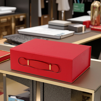 Scatola di carta cosmetica personalizzata in pelle PU di lusso con manico stampato in lamina d'oro per regalare regali di Natale